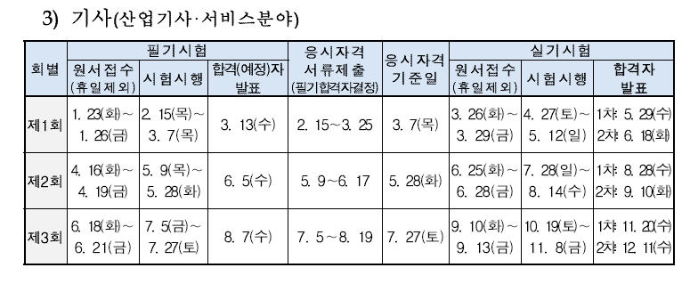 아무튼 제2회를 보시면 필기는 5월 9일~28일에, 실기는 7월 28일~8월 14일까지네요.